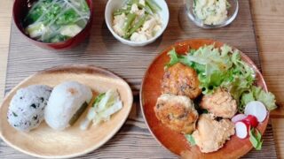 今回紹介する行っておくべきお店は、東温市にあるひびカフェです。 駐車場は5台で、駅から近いので歩いて行けることもできます。 店内はこじんまりとしたアットホームな雰囲気でした。 今回はセレクトランチ(1100円)を注文しました。メインとご飯を自分で選ぶことができて、とても迷いましたがご飯はおにぎり、メインはつくねとから揚げにしました。