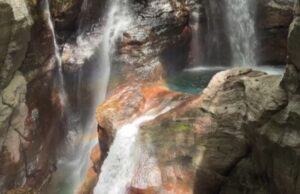 到着し渓谷を進むと、光の反射で水面が青く輝き、きれいな景色が広がっていました!途中、小さな虹が滝つぼにかかっているのを見つけ、自然の神秘を感じました。
